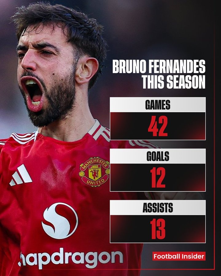 42場12球13助造87次機會,英媒列B費數(shù)據(jù):最不被尊重的球員? 3月11日訊 Football Insider今天曬出了B費的數(shù)據(jù)海報,并詢問球迷:這位曼聯(lián)隊長是不是當今世上最不被尊重的球員。本賽季,B費各項賽事出場42次,貢獻12個進球和13個助攻,并創(chuàng)造了87 2025/03/11