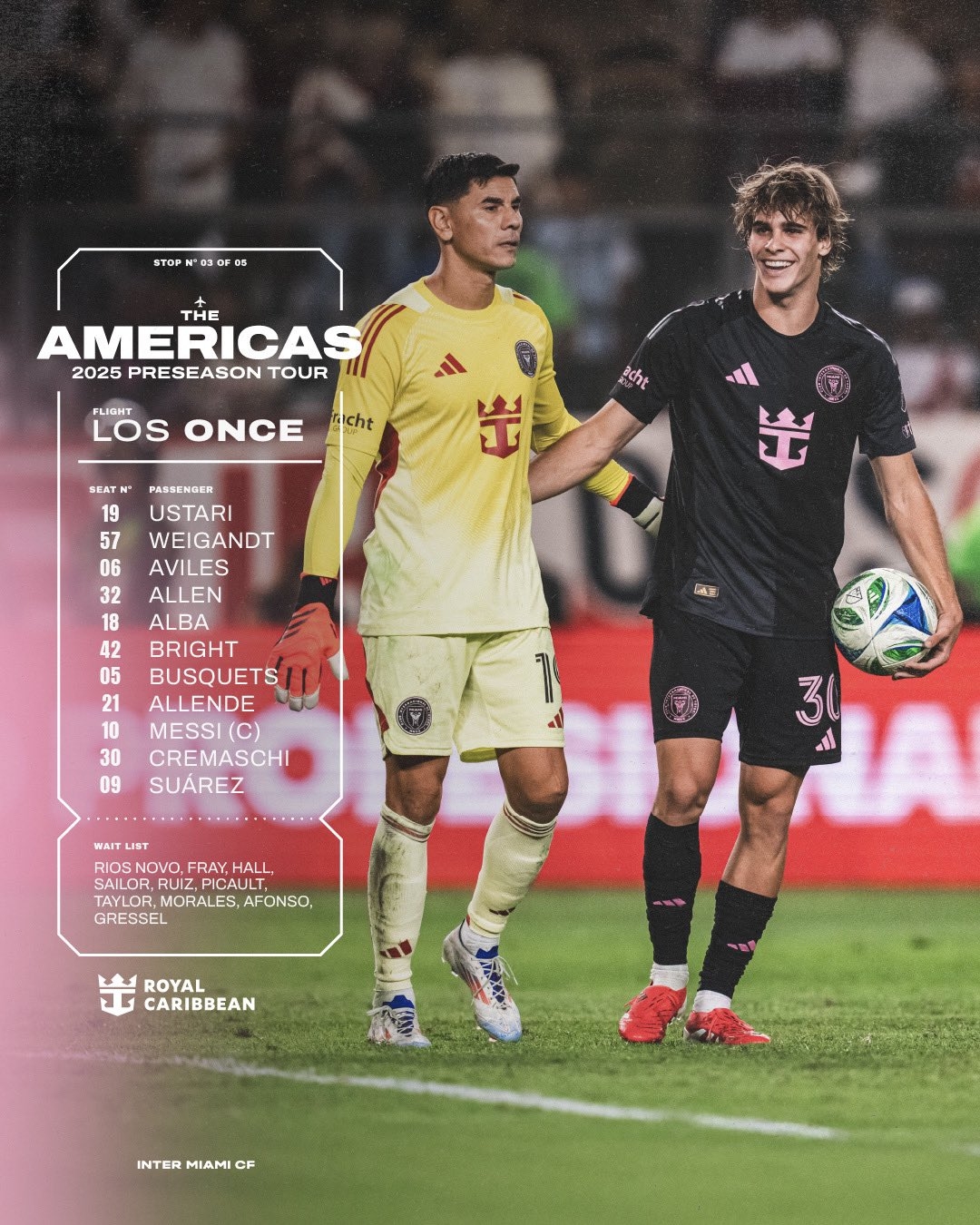 邁阿密國際vs圣米格利托體育首發(fā):梅西、蘇亞雷斯、布斯克茨出戰(zhàn) 02月03日訊 熱身賽,邁阿密國際客場對陣圣米格利托體育,賽前首發(fā)名單公布。邁阿密國際首發(fā):19-烏斯塔里、57-韋甘特、6-阿維萊斯、32-阿倫、18-阿爾巴、42-布萊特、5-布斯克茨、21-阿連 2025/02/03