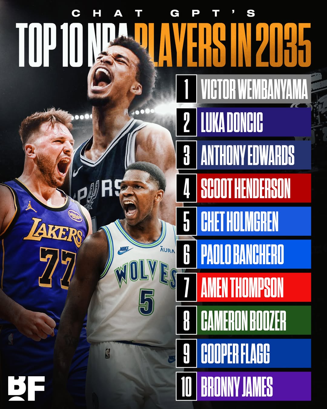 1、文班2、東契奇3、愛德華茲4、亨德森5、切特6、班凱羅7、阿門8、卡梅隆-布澤爾9、弗拉格10、布朗尼 標(biāo)簽: 籃球 NBA 湖人 東契奇 布朗尼 馬刺 森林狼 文班亞馬 愛德華茲 雷霆 開拓者