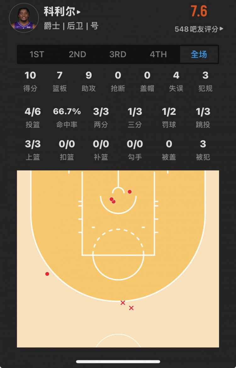 爵士29號秀 以賽亞-科利爾 登場30.2分鐘