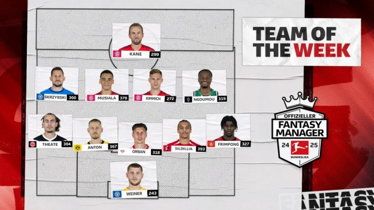 2月3日訊 德甲第20輪聯(lián)賽已經(jīng)完賽,德甲官方也評出了本輪最佳陣容,拜仁3將在列。