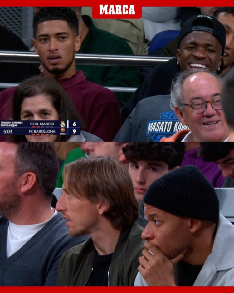 2月28日訊 歐冠男籃迎來皇馬和巴薩的國家德比戰(zhàn),在昨天凌晨結束國王杯半決賽首回合比賽后,多位皇馬球員在現(xiàn)場觀看這場籃球比賽。