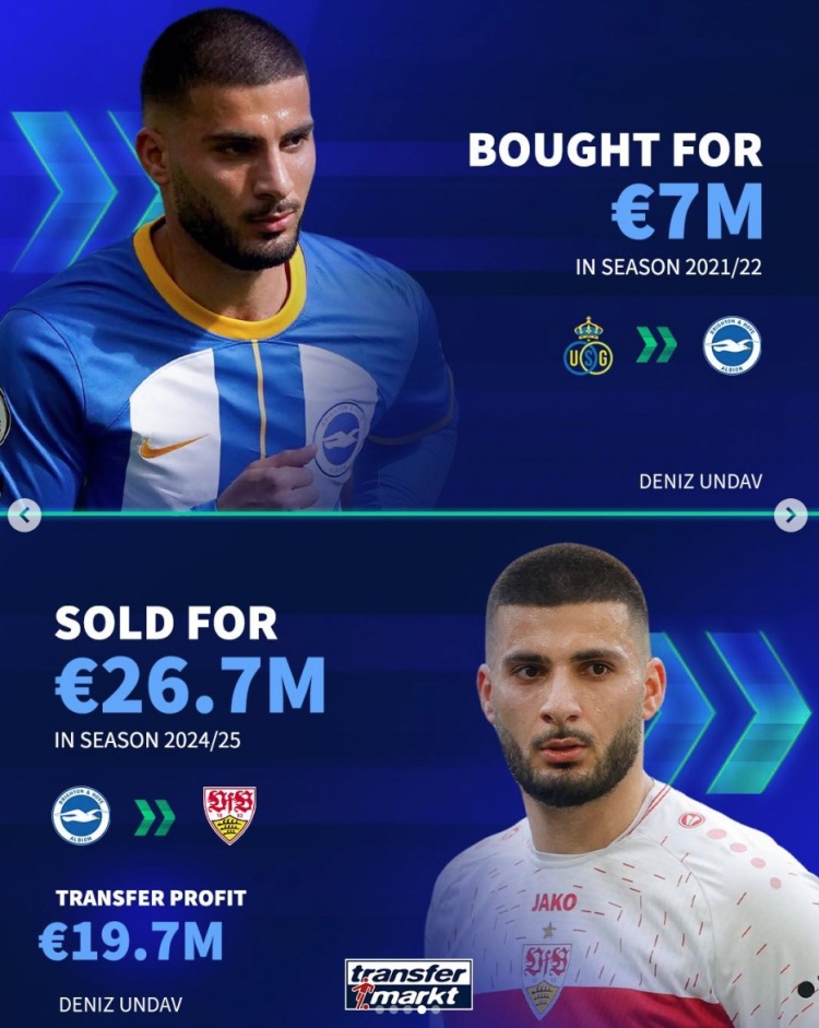 3月3日訊 《轉(zhuǎn)會(huì)市場(chǎng)》統(tǒng)計(jì)了布萊頓近年的5筆低買高賣轉(zhuǎn)會(huì)操作,共計(jì)凈賺超過(guò)2億歐元。