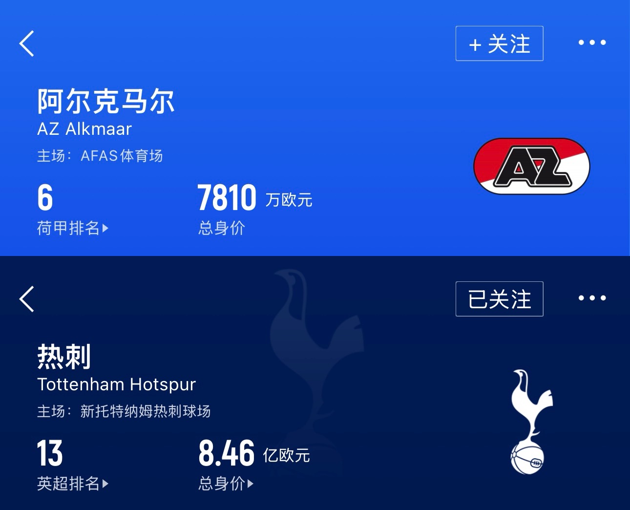 1、24/25賽季,熱刺0-1阿爾克馬爾,7.68億歐