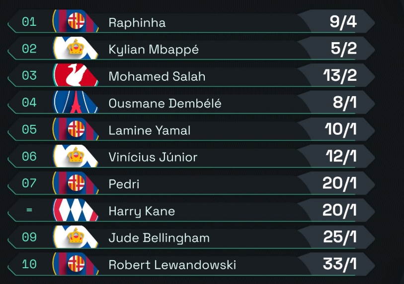 3月18日訊 日前,足壇進入國際比賽日階段,相關(guān)機構(gòu)更新了最新的金球獎賠率。