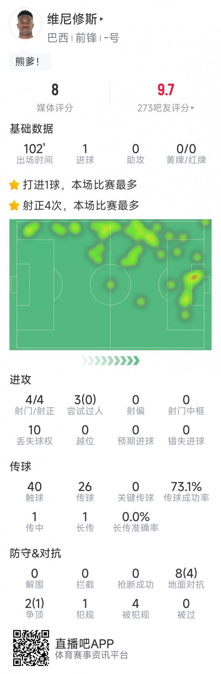3月21日訊 在本輪世預(yù)賽南美區(qū)比賽,巴西2-1擊敗哥倫比亞,維尼修斯打進(jìn)絕殺,以下為他在本場數(shù)據(jù):