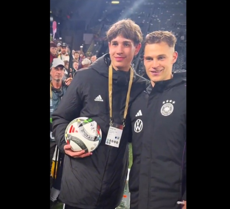 德國球童助力快發(fā)角球破門,基米希賽后送上簽名足球并合影鼓勵