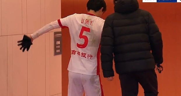 第38分鐘,譚龍拼搶中受傷倒地被擔(dān)架抬出場外,同時(shí)李申圓受傷堅(jiān)持不住回更衣室。↓