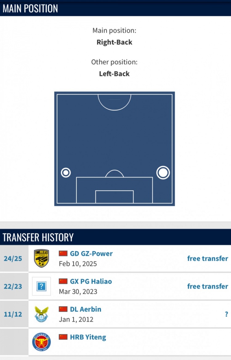 在德轉(zhuǎn)單鵬飛的個人頁面中,他已經(jīng)于2月10日加盟廣州豹,但合同年限并未披露。本次單鵬飛屬于自由身轉(zhuǎn)會,因此廣州豹無需支付轉(zhuǎn)會費用。