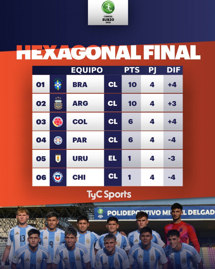 本輪另外兩場比賽,巴拉圭1-0擊敗烏拉圭,哥倫比亞3-1擊敗智利,哥倫比亞和巴拉圭同積6分,兩隊也鎖定了今年智利U20世界杯的參賽資格。而烏拉圭排名倒數(shù)第二,已無緣U20世界杯。